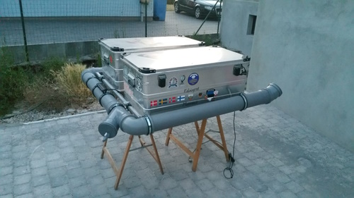 Bei der Suche nach einem geeigneten Auto kam der Zufall zu Hilfe. Vati's geliebter Galaxy Baujahr 1999 ist gerade alt genug für die Tour und wird nun zum Schlafmobil umfunktioniert.Als nützliches Extra wird der Dachgepäckträger um eine Freiland-Dusche ergänzt. Die Koffer, die uns beim Baltic Sea Circle 2017 schon so gute Dienste erwiesen haben, müssen natürlich auch wieder mit. Und so steht er jetzt da und wartet auf den Start ...