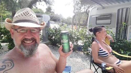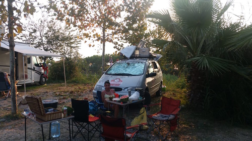 Wir haben direkt am Meer einen der wenigen Campingplätze gefunden, allerdings herrscht hier eine Luftfeuchtigkeit von gefühlten 99 %, wir sind etwas gebeutelt und ausgelaugt. Morgen geht's nach Montenegro zur 2. Party!