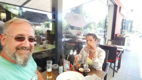 Bereits in Österreich: Mittagsstop beim Italiener in Villach und in 2,5 Stunden ist es dann vollbracht: Zieleinlauf vor dem Casino in Salzburg!