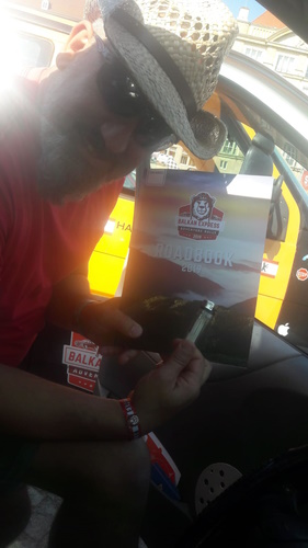 Noch am Start beginnt Thomas damit, eine der Aufgaben aus dem Roadbook zu lösen, die uns in den nächsten Tagen immer begleiten werden: Eine Büroklammer sollen wir in jedem Land einmal gegen andere Dinge tauschen ... so wechselte die Büroklammer den Besitzer und wir haben ein Feuerzeug in Empfang genommen. Tauschen in Deutschland: erledigt!