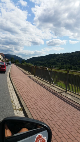 Auf nach Tschechien über Pirna und Bad Schandau! Landschaftlich haben wir heute in der sächsischen und tschechischen Schweiz einiges zu sehen bekommen! Bemerkenswert ist die schmale Elbe, die hier in Tschechien nur ein kleines Bächlein ist. Auffallend waren auch die hunderte Zebrastreifen und Eisbuden! Man konnte von einer zur nächsten schauen. Da wir vergessen haben Geld zu tauschen, konnten wir leider kein Eis kaufen.