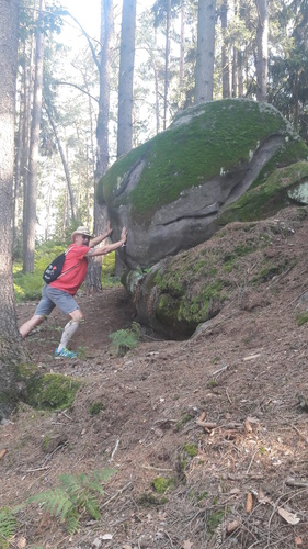 Heutige Tagesaufgabe war, auf einem Sandsteinfelsen mit einem Bier über den Sinn des Lebens nachzusinnen. Erledigt! Eselchen (das Maskottchen) schwebte zwischenzeitlich in schwerer Gefahr und konnte nur knapp entrinnen, hat dann die Tagesaufgabe trotzdem geschafft und durfte dann auch gnädigerweise das Bier austrinken!