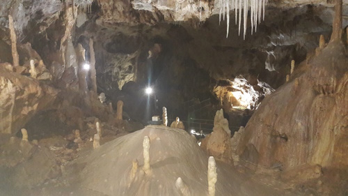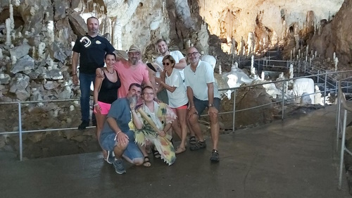 Heute morgen haben wir zusammen die gestrige Tagesaufgabe erledigt - wir waren in einer riesigen Höhle, genannt die Bärenhöhle! So viele schlaue Menschen, aber niemand hat bedacht, dass Höhlen sehr sehr kalt sind. Hans-Christian und Thomas haben liebenswerterweise ihre T-Shirts ihren Mädchen überlassen!