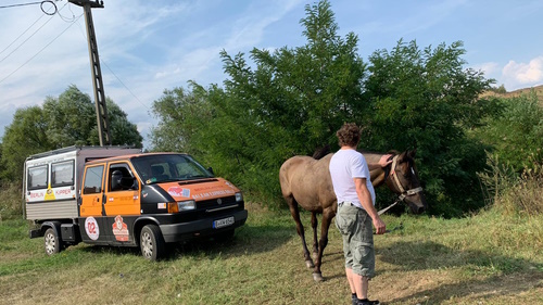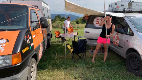 Parkplatzcamping ... Gegenübertritt mit Regenbogen nach Rumänien. Dieses Mal haben wir an Geld wechseln gedacht! Die Stimmung ist super ... Wetter nicht ganz so!