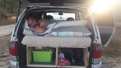 Der Innenausbau kommt gut voran. Bett und Stauraum sind fertiggestellt. Anzeichnen, Zuschnitt und passt! Der "Durchblick" wird jetzt ferngesteuert: