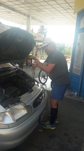Ein kleines Autoproblem gab es: Hydraulikflüssigkeit der Servolenkung war einfach weg. Aber das Problem war mit der Hilfe eines Tankstellenwarts und einem kurzen Anruf in der heimatlichen Werkstatt schnell erledigt.