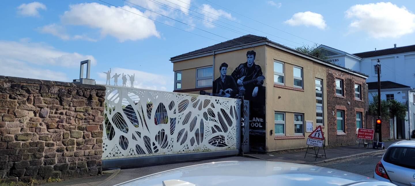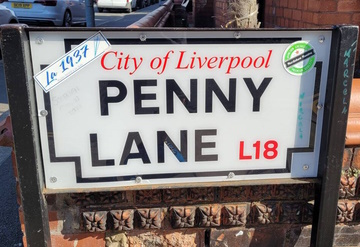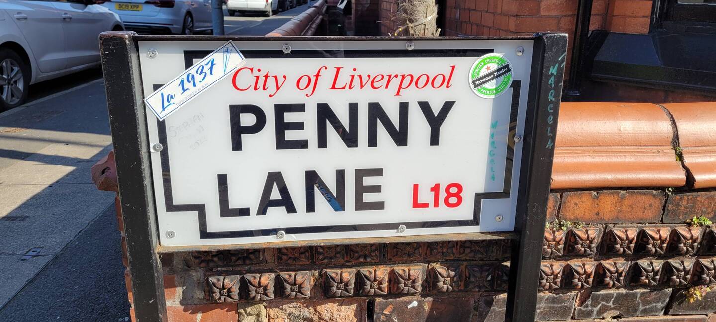 Penny Lane in Liverpool ... leider keine Zeit für den Pub.