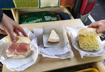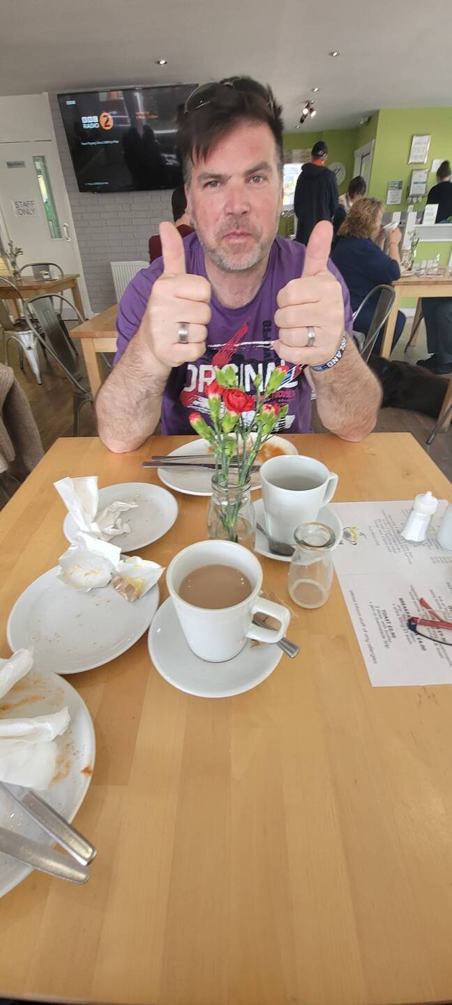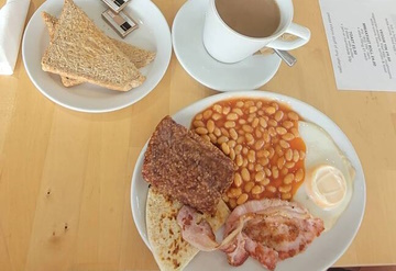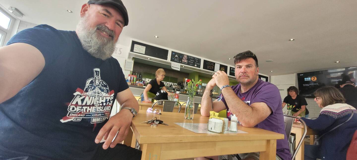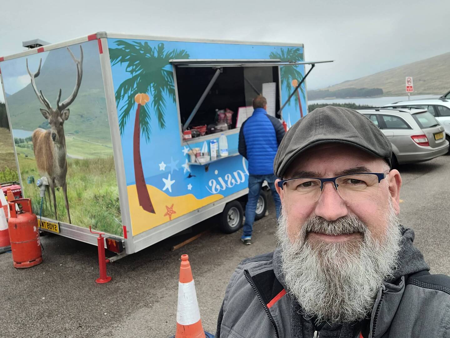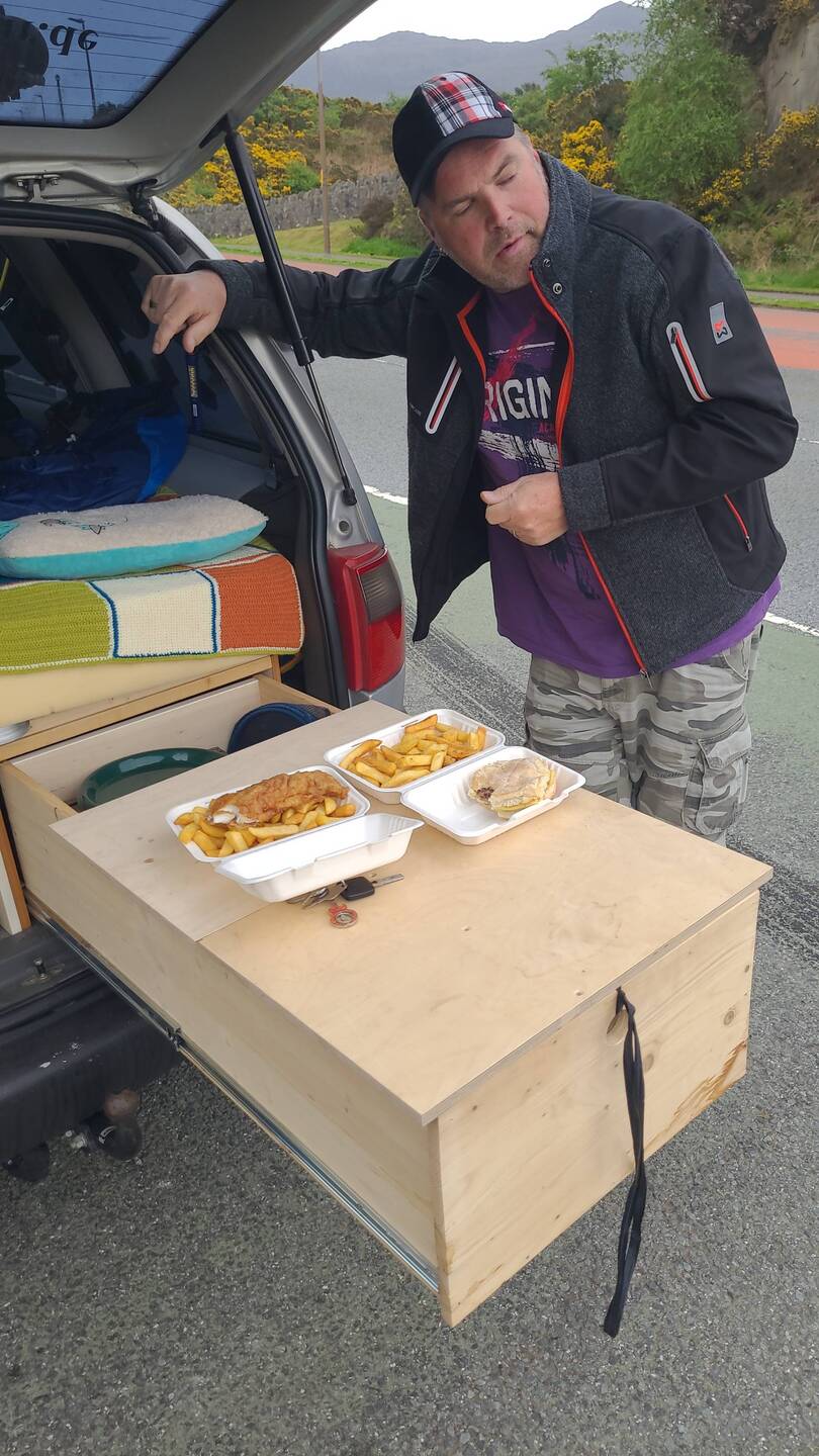 Frühstück auf der A487 ca. 20 Meilen hinter Fishguard am Imbiss.