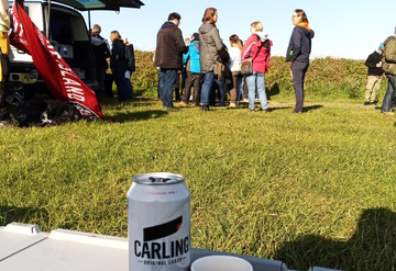 Sammeln zum Ausflug in den Pub mit Wegbier.